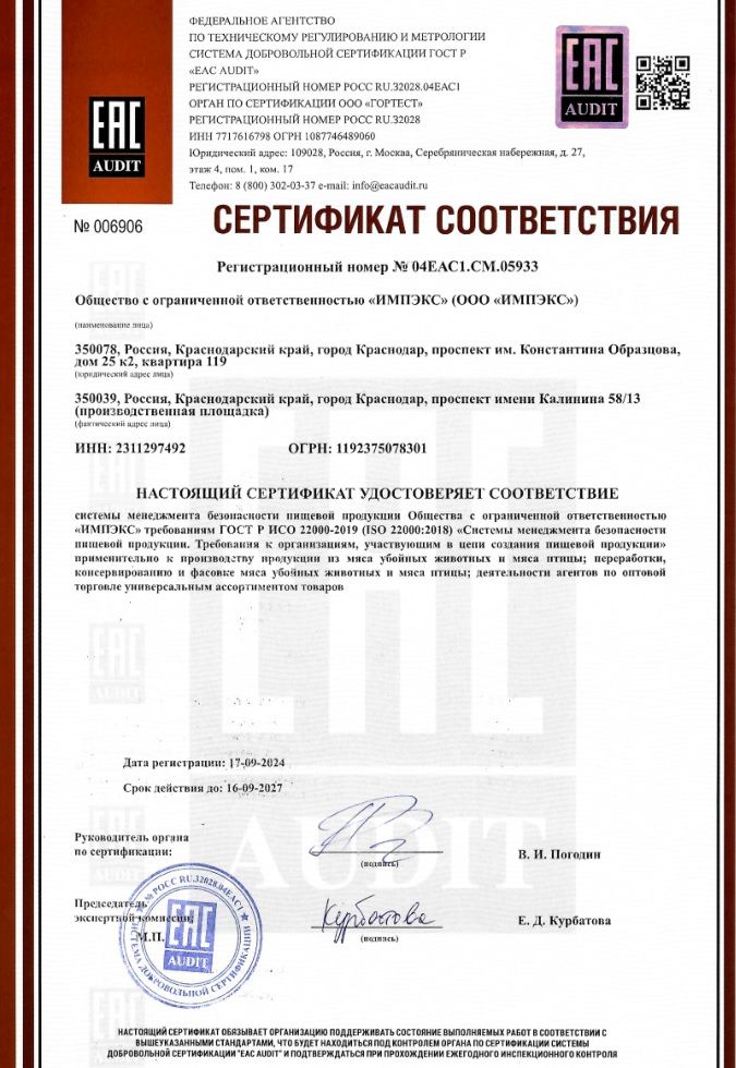 СЕРТИФИКАТ О СООТВЕТСТВИИ