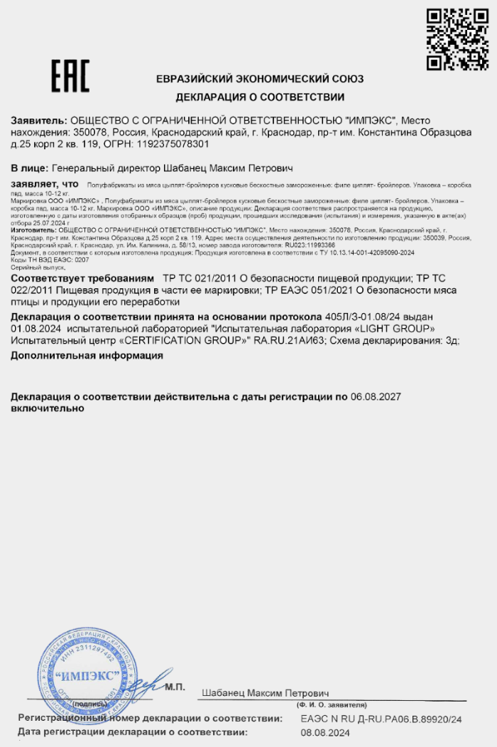 ДЕКЛАРАЦИЯ О СООТВЕТСТВИИ